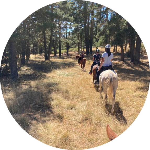 Paseos guiados a caballo por senderos de la sierra, rodeado de naturaleza. Apto para todos los niveles.